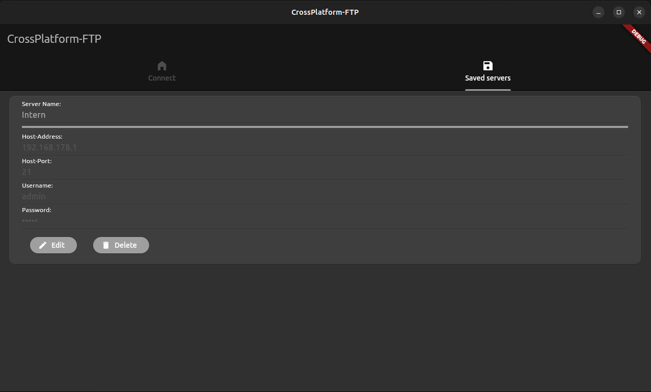 Description: Cross-platform FTP client built with Flutter for Linux desktops